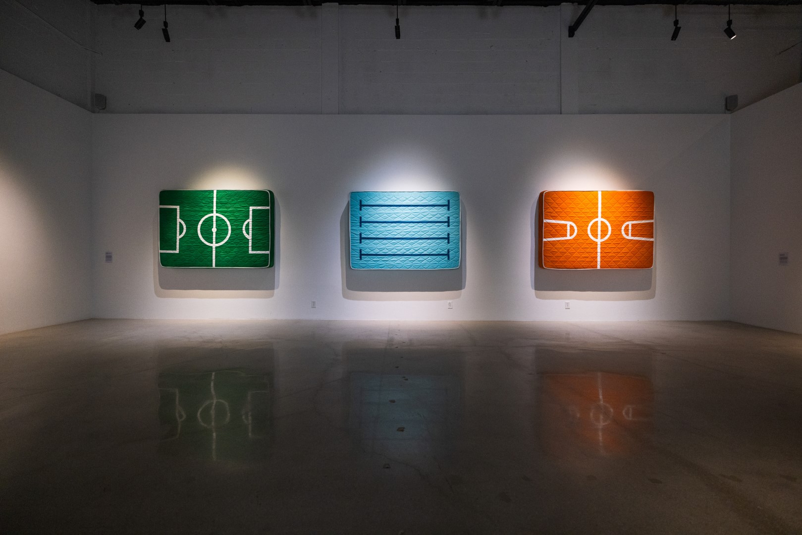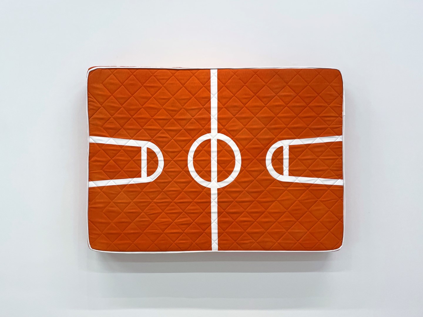 Colchón intervenido con los dibujos de las líneas de los campos de juegos.